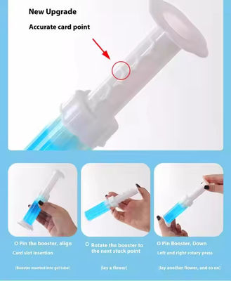 2. Align the pushrod with the butt hole, plug it into the gel tubes, and squeeze until it locks in place. Rotate it next time you want to add a new flower and do the same thing.